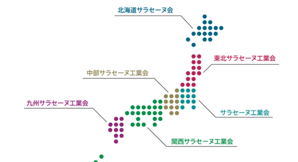 全国の防水施工会社や販売店と協力し、「サラセーヌ工業会」を設立することで、サラセーヌ本来の機能を十分に発揮できる環境を整えています。この工業会は、全国6つの地域に密着した活動を推進し、会員である施工会社、販売会社、メーカー間の交流を促進し、サラセーヌに関する情報交換や業界のレベルアップを図っています。具体的には、「サラセーヌカレッジ」や「サラセーヌスクール」の開講、ウレタン塗膜防水技能講習会の開催、技術研修会の開催など、技術の向上を目的としたさまざまな活動を行っています。知識と技術を共有